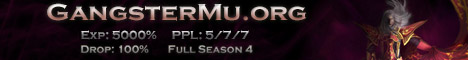 GangsterMu Season 4 Epizode 2 [exp:1000%][Drop:80%][PPL:5/7/7][24/7][No Lag][Kundun Boss 30 Minet][Socket System][Chaos Machine 70%][MaxStat 65535][Join NOW]